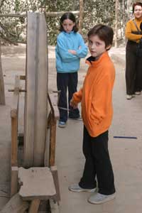 This young girl got nervous as we watched, and fumbled her shuttle a few times, but soon found her rhythm – pumping both feet, tossing the shuttle back and forth, and pushing the heavy wooden loom with her feet and hands to compact the threads. Sami was impressed to learn that the girl had gone to a special training school to learn the trade – but a little taken aback when she realized that at age 15, that was all the schooling the girl would ever get. And there's no recess in the weaving workshop.