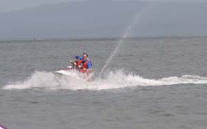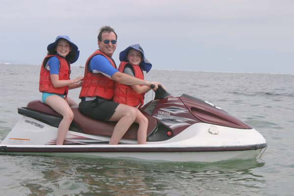But Mom’s not the only one with a thrill up the sleeve of her surfer shirt. Dad’s about to take his daughters riding on their first-ever jet ski!