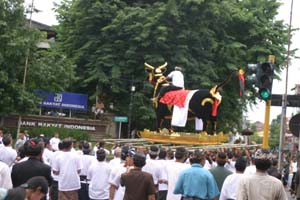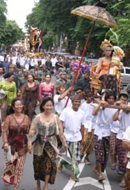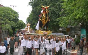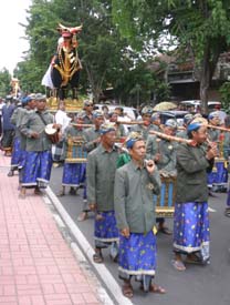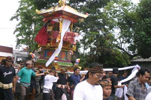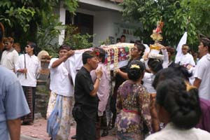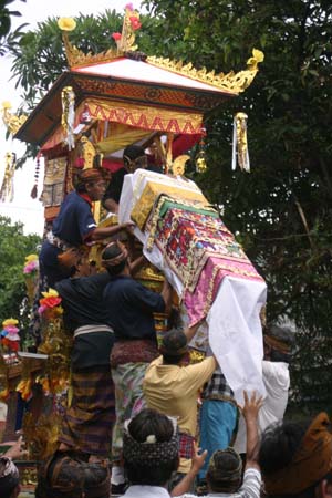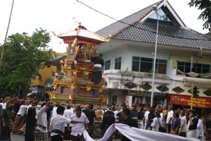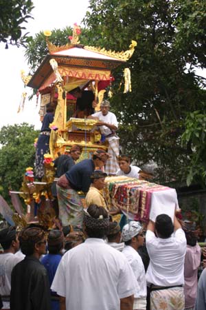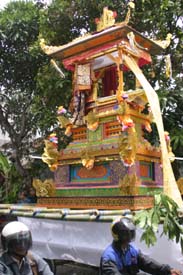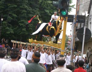 To our amazement, the funeral was given uninterrupted passage through Denpasar’s normally traffic-choked streets. At the first intersection, the bull-bearers gave their charge a rapid turn-around as the lights changed several times: