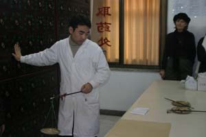 It was the personal office for Premier Zhou En Lai, who protected it from destruction during the Cultural Revolution. Later on, it served as the first official American presence in China - a "pre-embassy" where George Bush One and Barbara lived after Nixon visited and before US-China formal relations were re-established in 1979. Unfortunately, we weren't able to enter any of the residential buildings that day, since they were being used for a TV soap opera shoot! (Welcome to New China). So after trying to peek in windows and being shooed away, we followed our CCC guide to the TCM center on the courtyard's southwest side.