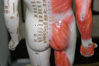 Because it was a working medical center (depsite feeling somewhat like a musuem), the tools of the trade were everywhere. The first thing that caught our eye was a half-sized statue of a man, indicating each acupuncture points. The girls were of course fascinated, especially by the lower half of the front side. I (this is Tom writing) decided to not post it here, both to avoid any censors, and since it makes me wince and shiver in all sorts of uncomfortable places every time I look at it!