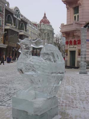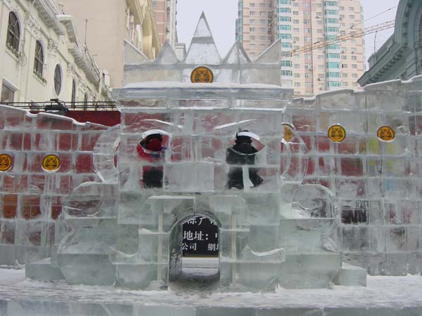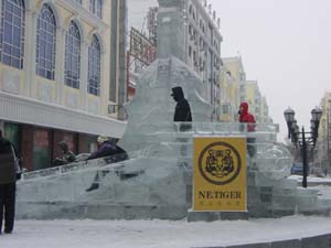 shops were punctuated by more ice sculptures, many sporting advertisements