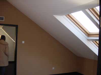 are some nice Velux skylights. Sharon is walking into the spacious