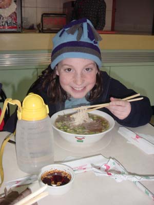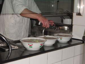 Another very typical northern snack. Since our class, we have a new appreciation of la mian, and have been known to express disdain for dried noodles that aren’t pulled in front of our eyes. We have made the leap from fans to connoisseurs. Miranda and I were in Malan a few days ago, in the middle of Spring Festival when non-Beijingers have left town for their home provinces and lots of stores are closed for the week. Malan, of course, stays open, day and night, even as all the other restaurants, hair salons, florist shops and pirate DVD joints on the block are shuttered for the new year holiday. Malan is usually jammed at noon, but when we got there at 12:05, only one other customer was ahead of us. Turns out he was a security guard organizing a big take-out order for his buddies, and the distracted cook made our noodles while working on the big order. What with the dozen bowls of noodles for the guards, their vegetable side orders, and the security guard’s last minute demand for little containers of la jiao to take with him, we could tell the cook didn’t quite have his eye on our two small bowls of niu rou mian. After taking our food to the table and sampling the noodles, Miranda dryly commented, “I think the head chef must be out of town this week.” So come and visit - after Spring Festival, the head chef will be back- and we’ll take you across the street for a bowl of la mian, made to order and hold the la jiao. Fifty cents never bought you a fresher, cheaper, tastier or more authentic Chinese meal! |
