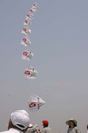 Perhaps I was reading too much into it, but the symbolism of the whole effort was striking: their Olympic kite was state-of-the-art, flying among dozens of other kites whose designs have not changed in a millenium or more. It took a huge team of young people to launch, and once it was flying, it was hard to control, whipping back and forth. Most of all, it caught your eye, and made all the other kites seem puny, frail, and old-fashioned by comparison. Next up: the Japanese entry. As you know, tensions are high right now between China and Japan for reasons dating back many decades.