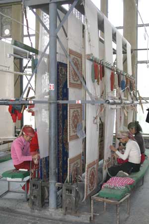 It takes six women about one month to complete a large area rug.