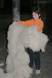 Moving on from the weaving room, Tom was delighted to get permission to enter an enormous room crammed with hulking, ancient-looking, oily machines for processing wool into fine thread. Turns out we were permitted inside only because the machine weren’t working due to a power outage! Sami enjoyed tossing around wads of soft wool, and we saw another bale stopped midway through the carding process.