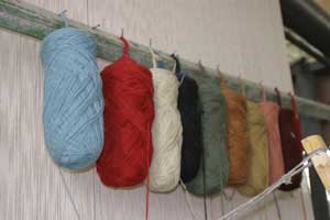 We followed the thread, so to speak, to the weaving workshop, where several teenage boys and a girl were poised over wooden foot-pedal looms, weaving colorful, fat, pre-dyed skeins into lengths of special Atlas silk cloth: