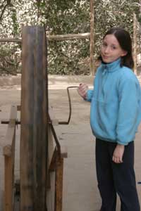 This young girl got nervous as we watched, and fumbled her shuttle a few times, but soon found her rhythm – pumping both feet, tossing the shuttle back and forth, and pushing the heavy wooden loom with her feet and hands to compact the threads. Sami was impressed to learn that the girl had gone to a special training school to learn the trade – but a little taken aback when she realized that at age 15, that was all the schooling the girl would ever get. And there's no recess in the weaving workshop.