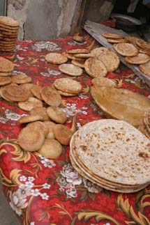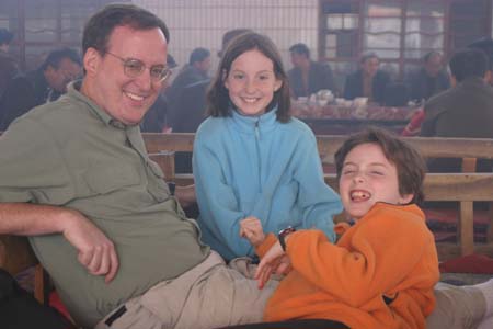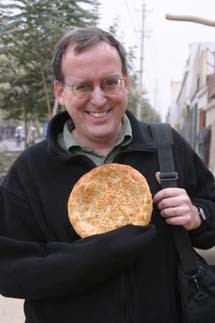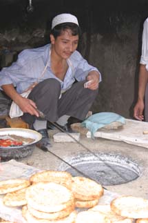 The girls do not, unfortunately, care for lamb. One might think their aversion stems from seeing it in its raw form everywhere, but surprisingly, they got used to that pretty quickly. No, their issue is philosophical, or as Sami puts it, “We are vegetarians against lamb.” Why? Miranda’s stuffed lamb, Calisa, has been with her since babyhood and is like a member of the family. We did explain – numerous times - that Calisa is an intelligent, special lamb, and that “mutton” comes from dumb, old, ordinary sheep – to no avail. Throughout our trip, the girls subsisted largely on fangbian mian – [exact translation: “convenient noodles,” also known as ramen], which I took to carrying around in my backpack, ready to whip out when hunger struck. Fortunately, boiling water is not a scarce commodity anywhere in tea-loving China! Tom loves bread in any form, and we did a lot of comparative taste-testing of naang, preferably pulled fresh from a circular, tandoor-style oven: