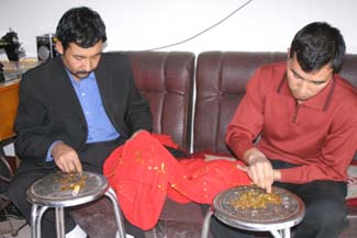 Miranda’s Uighur costume was due to be finished, so we returned to Mr. Shakeer’s shop in time to see some last-minute tailoring.