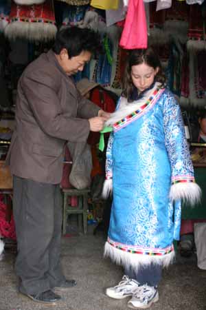 Tibetan close-up. The girls ended up taking these costumes home, including
